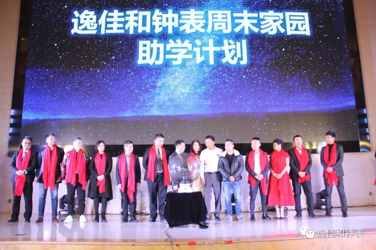 本次晚会的现场有幸请到了广东省钟表协会会长陈红弟先生及罗西尼表、天王表、依波表、雷诺表、诺贝尔表、宝时捷表、天珺表、古尊表、西腾表、雷迈表、史努比表、斐乐表等品牌的负责人,在“逸佳和钟表”“周末家园”的启动仪式上,企业家们纷纷表态愿意出钱出力来一起参与本次活动。