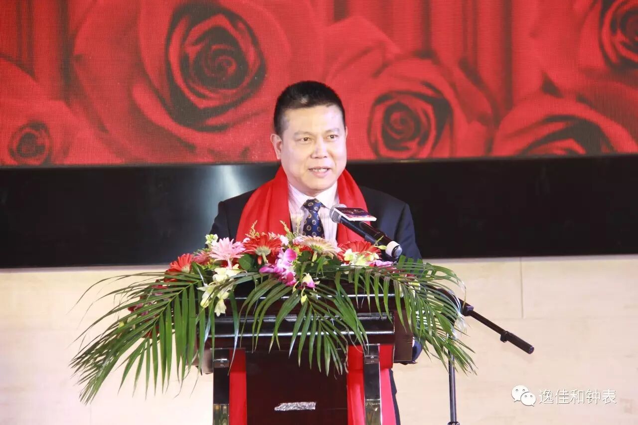逸佳和钟表的成长和发展离不开品牌商的支持与佳人们的努力。 有幸邀请广东省钟表协会会长陈红弟为逸佳和钟表的成长給予了美好的祝福和期许。逸佳和钟表何崇林总经理上台致辞,表达了他对来自五湖四海的佳人们和品牌商的感恩和感谢,以及对逸佳和钟表人的衷心祝福。
